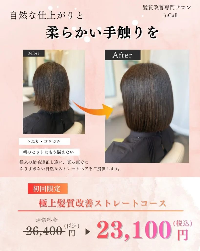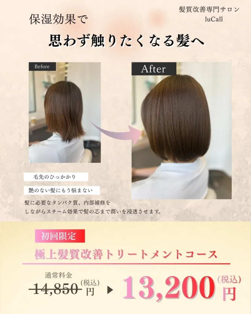 髪を補強することにより、髪へのダメージはもちろん仕上がりの状態を長持ちさせることができます。